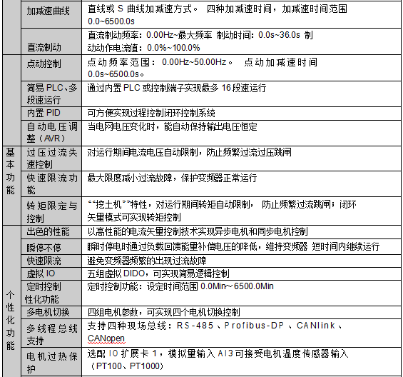 l 全新的SVC(无速度传感器矢量控制)算法,带来更好的低速稳定性,更强 的低频带载能力,而且支持SVC的转矩控制。